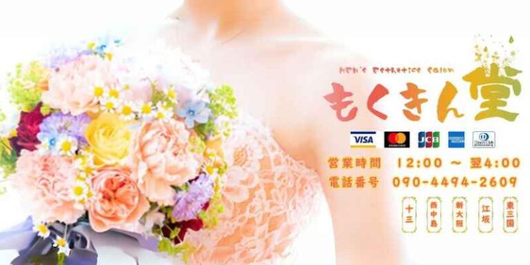 キュートな女の子から魅力あふれる大人なお姉さん、セクシーな雰囲気たっぷりなセラピストによるドキドキの刺激的な時間が「もくきん堂 十三」では体験できます。ラインナップは多彩、18歳から30代後半の美人ばかりを厳選採用しています。朝の5時まで営業、そしてクレジットカードが使えるので急に利用したくなったけど現金が無い、と言ったタイミングでも大丈夫なのです。 スタンダードコースは90分14,000円、180分コースまで用意されていますがそれ以上の時間も対応可能です。クレジットカード利用可能